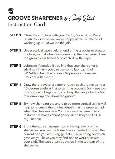 Increase spin and control with the Caddy Splash Golf Club Groove Sharpener — the ultimate groove tool for golf clubs. Built to sharpen golf wedge grooves, and bring your irons back to life, this durable, easy-to-use tool works on U, V, and square grooves to deliver maximum spin and performance in minutes.