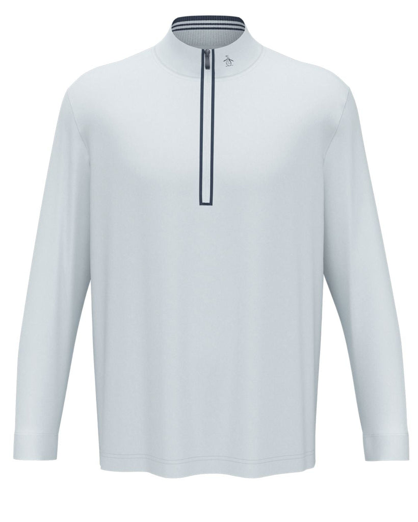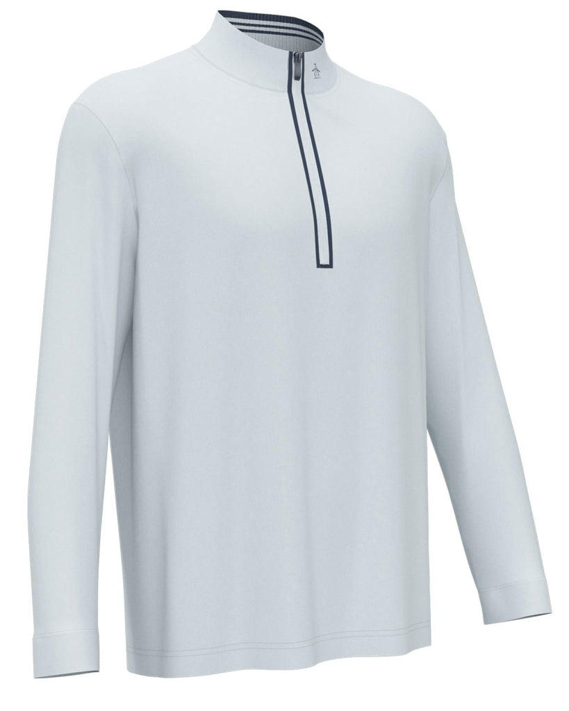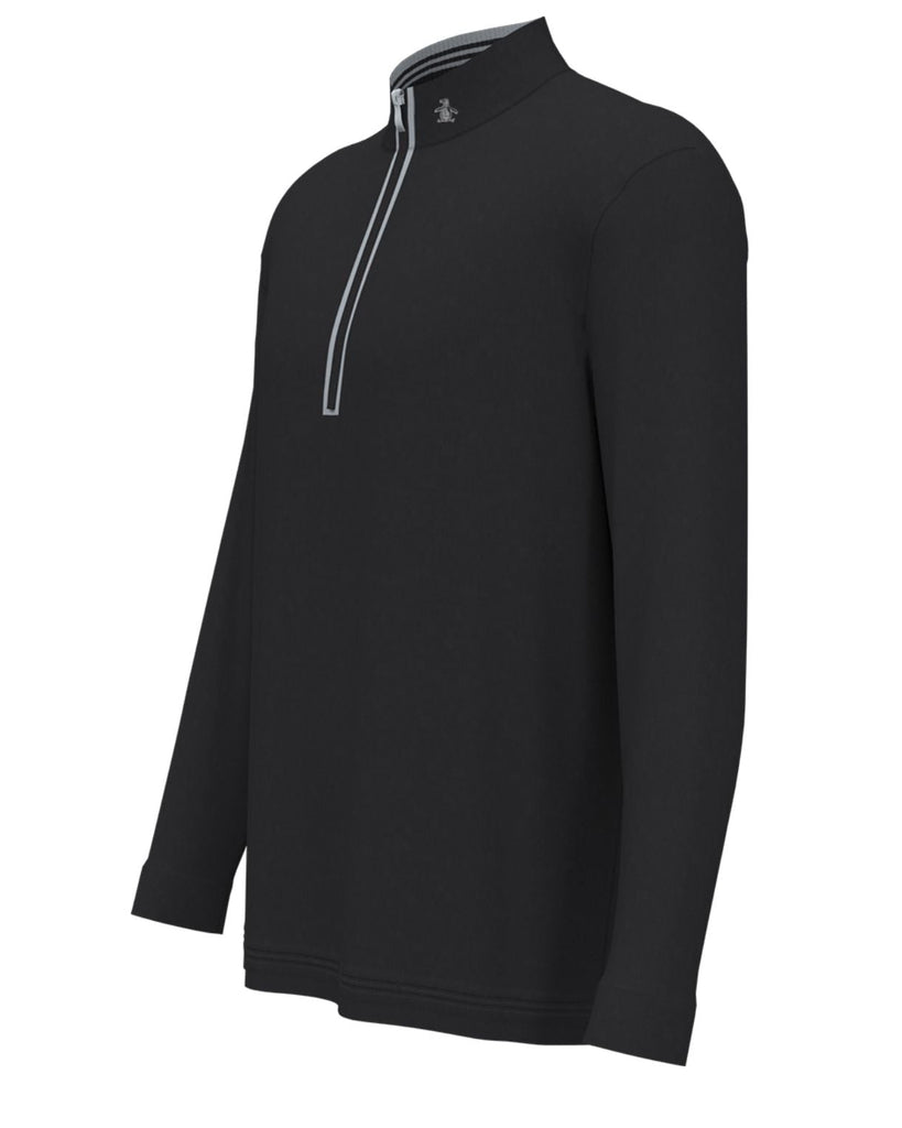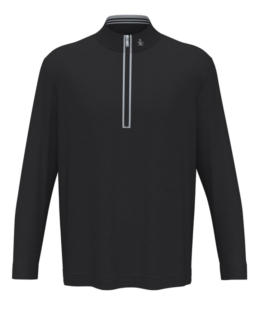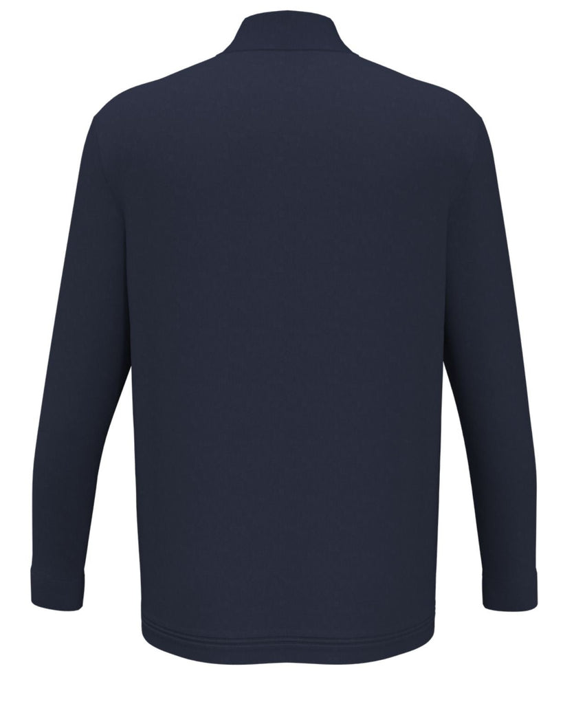 7.8 oz 90% Polyester / 10% Spandex. 1/4 Zip with Contrast tipping around zipper. 1 x 1 Rib knit inside mock neck. Contrast embroidered Pete logo on front left collar.