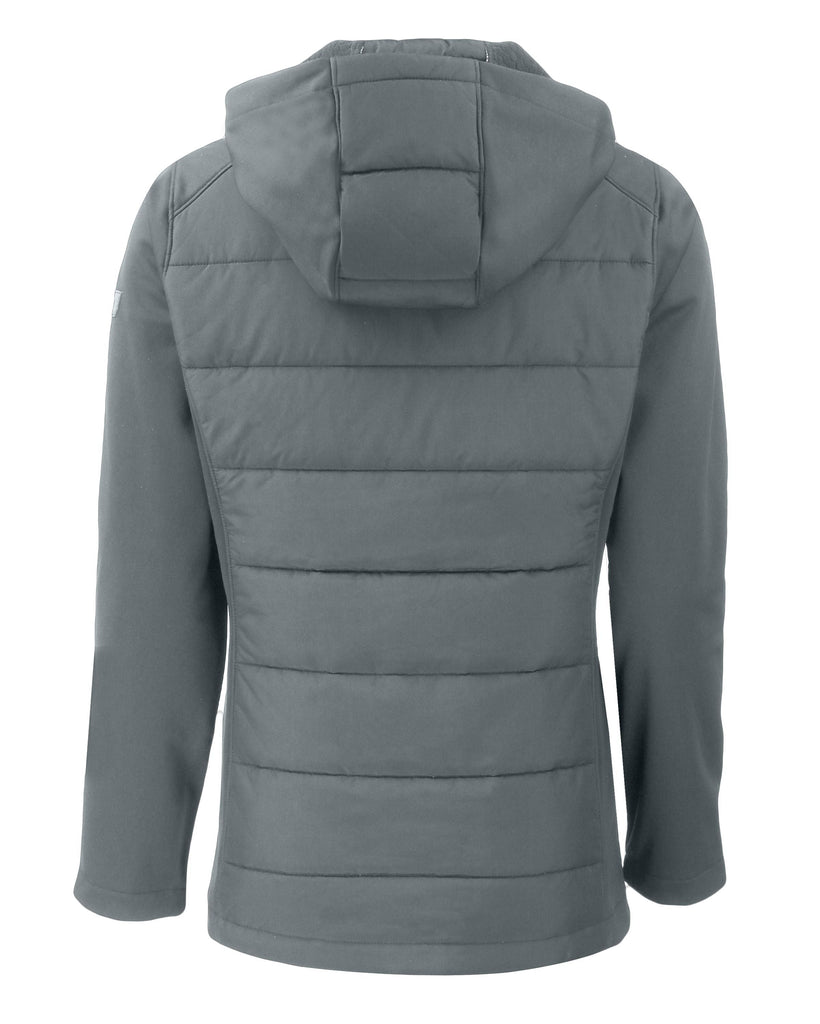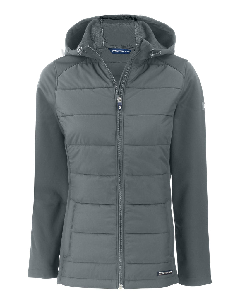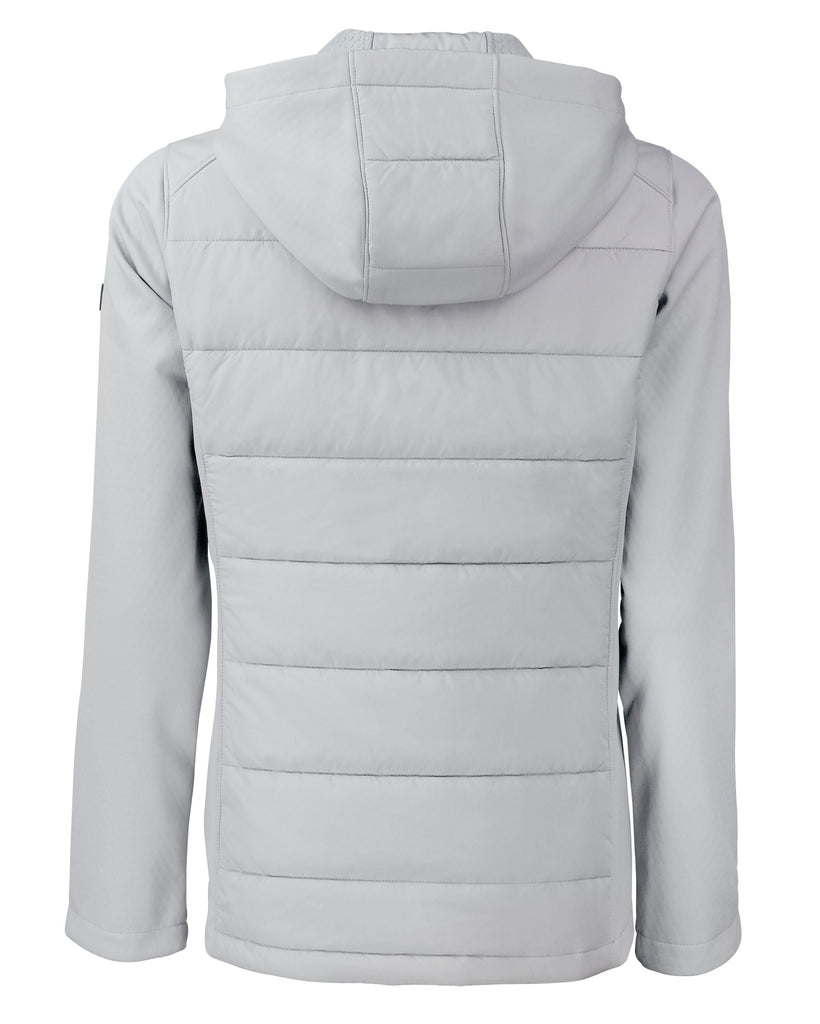 The iconic Evoke Hybrid Eco Softshell Recycled Full Zip Hooded Jacket is engineered for exceptional versatility, designed as your favorite year round full-zip hybrid hooded womens jacket for your active life: work, golf, tennis, travel, or any everyday adventure. We created this full-zip hybrid hooded jacket with a high quality certified eco-friendly 100% recycled polyester bonded honeycomb softshell treated with a DWR finish to give you a balance of wind and water resistance, stretch. Recycled Primaloft insulation provides lightweight warmth for year round layering so you can do more for you and your planet.